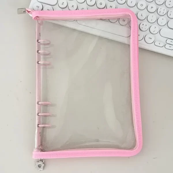 Binder con cierre rosa , incluye 10 folios con 4 divisiones para 80 pc .